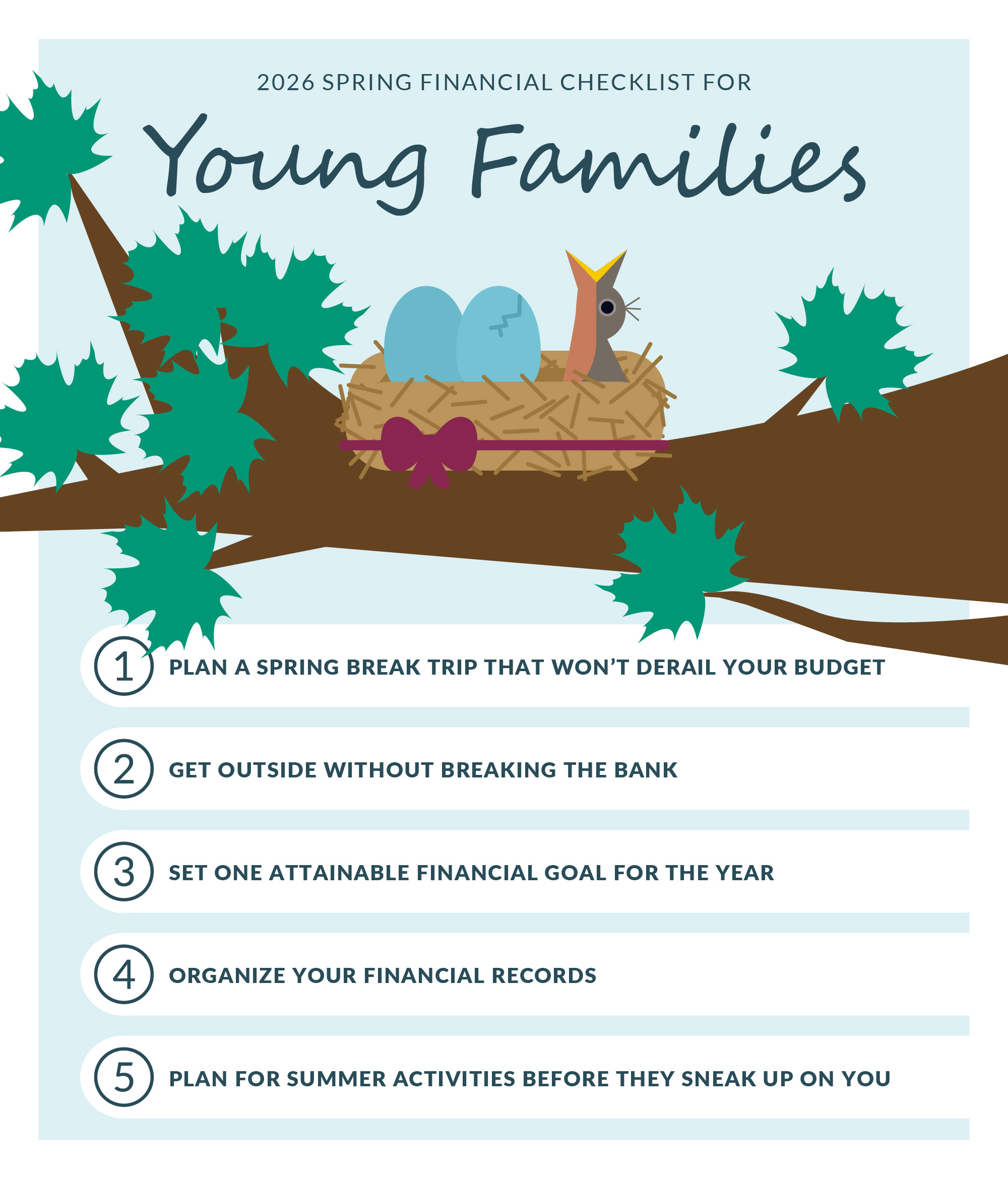 Spring in Wisconsin brings more than just melting snow — it’s that perfect window between tax time and summer vacation mode to get your financials in order. From planning a weekend escape to Door County or finally tackling that home maintenance project you’ve been putting off since last fall, these actionable steps will help you make the most of the season ahead. This spring checklist covers everything from smart spending on seasonal activities to proactive planning that'll set you up for success through summer and beyond.